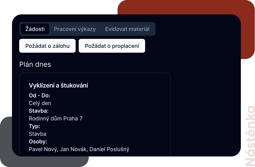 Přiřazujte úkoly přímo na nástěnku, umožněte zaměstnancům žádat o proplacení dokladů nebo zálohy na mzdu.