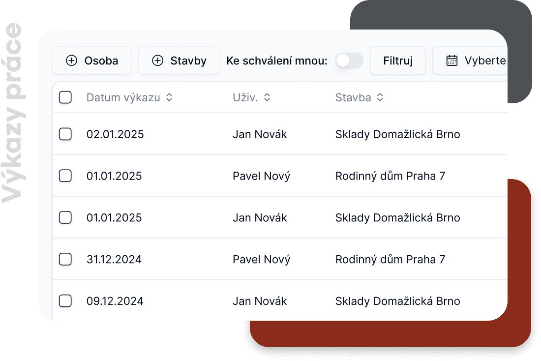 Zaměstnanci mohou sami vykazovat odpracované hodiny na konkrétní projekty. Díky schvalovacímu procesu jsou záznamy automaticky započítány do nákladů. Možnost sledování motohodin strojů v reálném čase pomocí služby Patriot nebo ruční evidence.