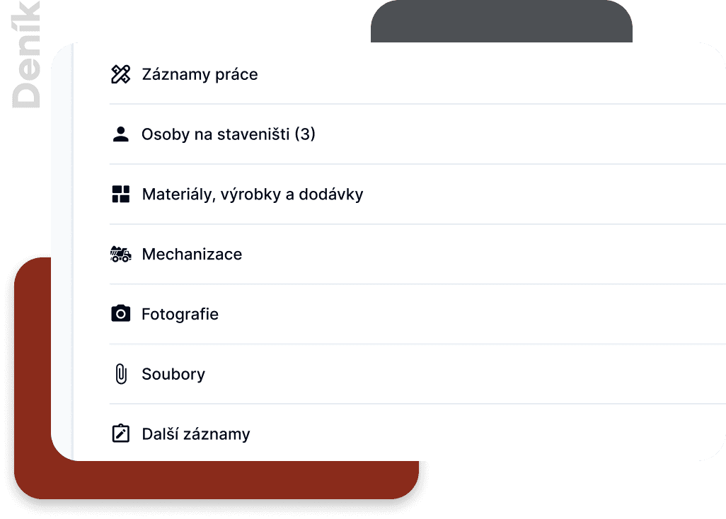 Zaznamenávejte veškeré úkony na stavbě a přidávejte fotografie přímo do digitálního stavebního deníku. Po dokončení prací lze vygenerovat PDF se všemi záznamy, což usnadní archivaci a zpětnou kontrolu. Pomocí AI lze automaticky generovat popisy a shrnutí.